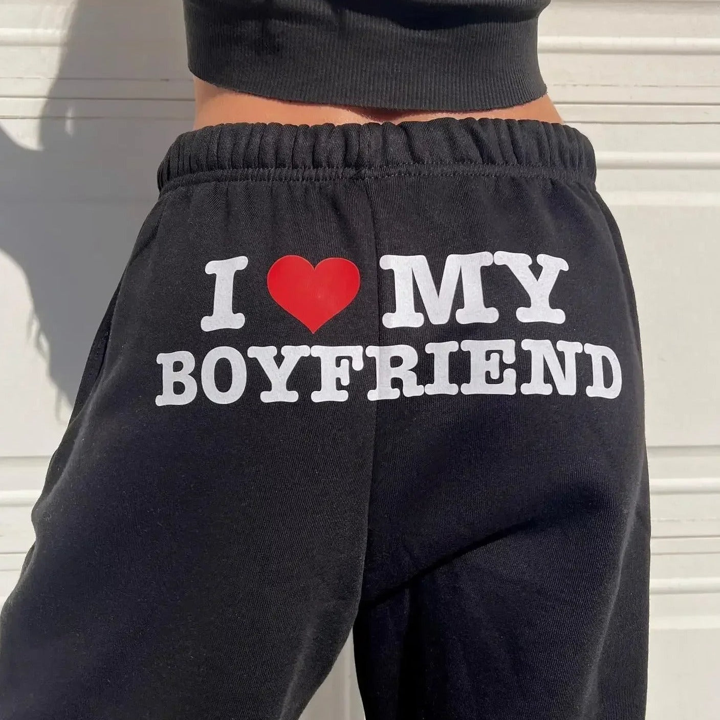 “These sweatpants are SO comfy! The fabric is soft, lightweight, and perfect for lounging. Plus, the ‘I Love My Boyfriend’ print is adorable!”