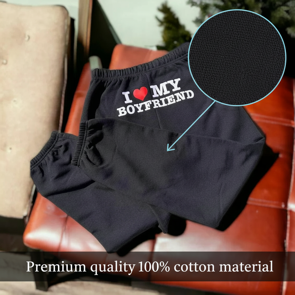 Every stitch is made to last through countless cuddles, movie nights, and laundry days. Because when you say “I love my boyfriend,” you deserve sweatpants that love you back. 💖